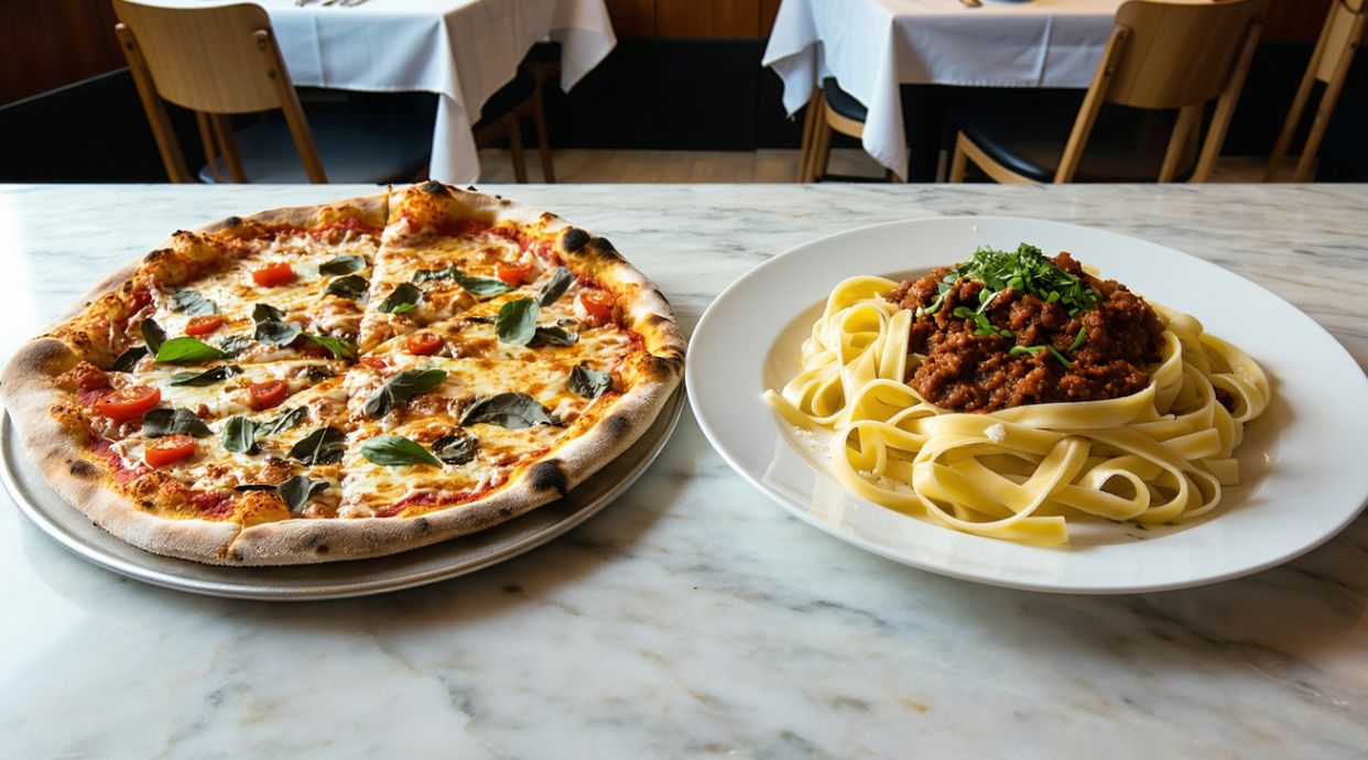 La clásica pizza italiana con salsa de tomate, mozzarella y albahaca fresca