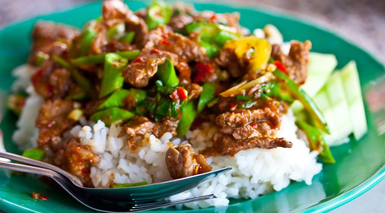 Arroz salteado con salsa especial de Kra Pao.