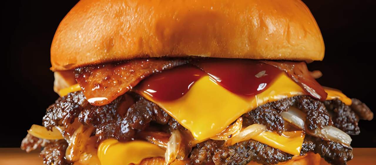 Doble smash, doble cheddar, salsa sugar barbacoa, candy bacon, cebolla caramelizada, cebolla y maíz