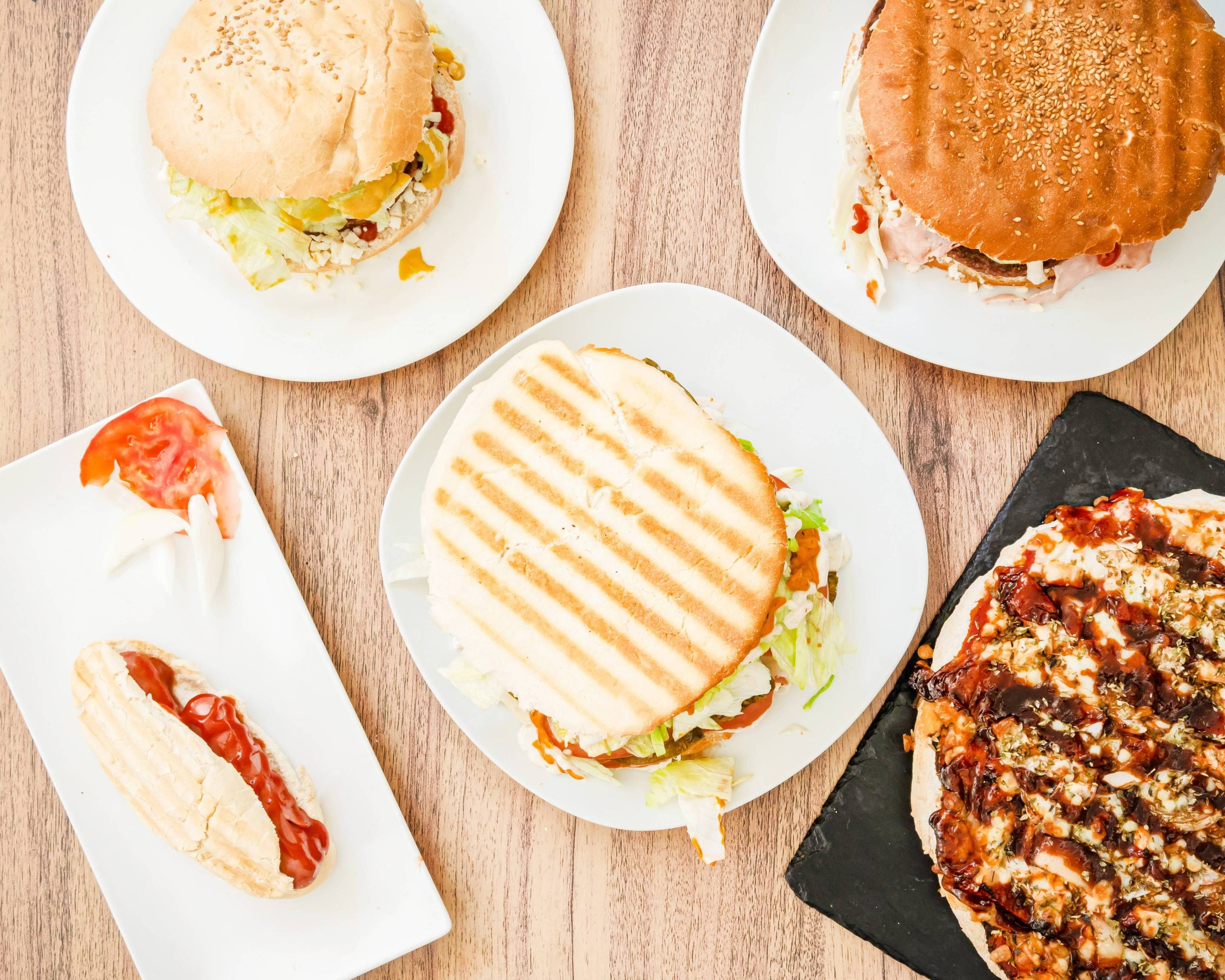 Pollo, jamón, pimientos, lechuga, tomate y cebolla