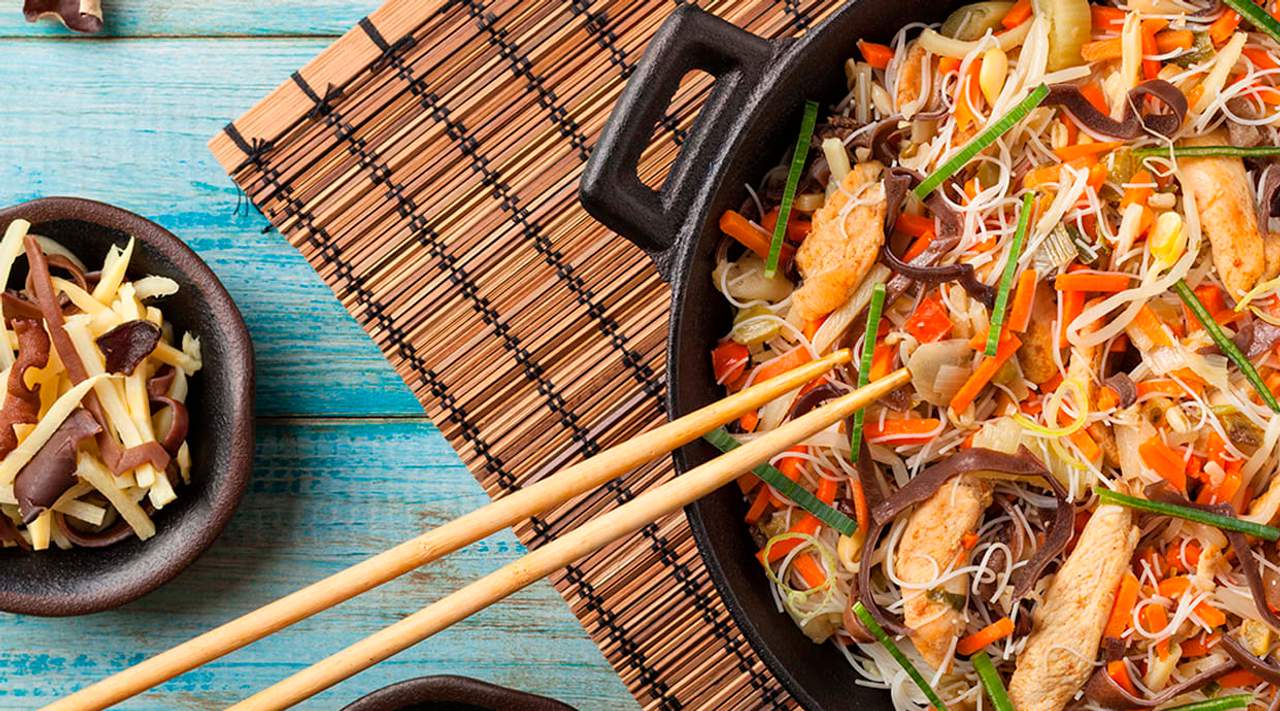 Pollo salteado en wok con salsa curry