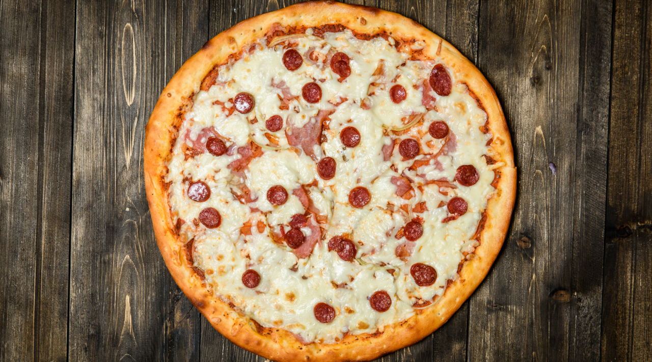 Tomate, cebolla, atún, jamón York, huevo, queso, orégano, tamaño único