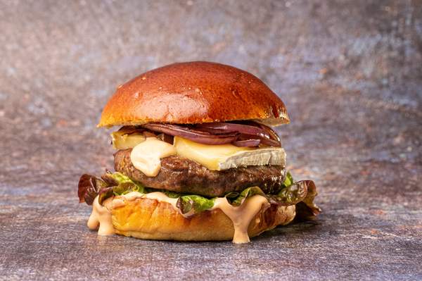 CheeseBurger de Vaca, con Queso Brie Fundido, Cebolla a la plancha, Brotes tiernos y salsa chipotle.Se pasa de nivel.