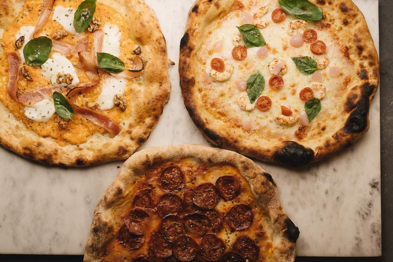Calzone de trufa, nuestra masa envuelve: crema de quesos, mozarella fior di latte, huevo al horno, jamón de york y trufa picada. Terminamos con orégano, sal en escamas y aceite.