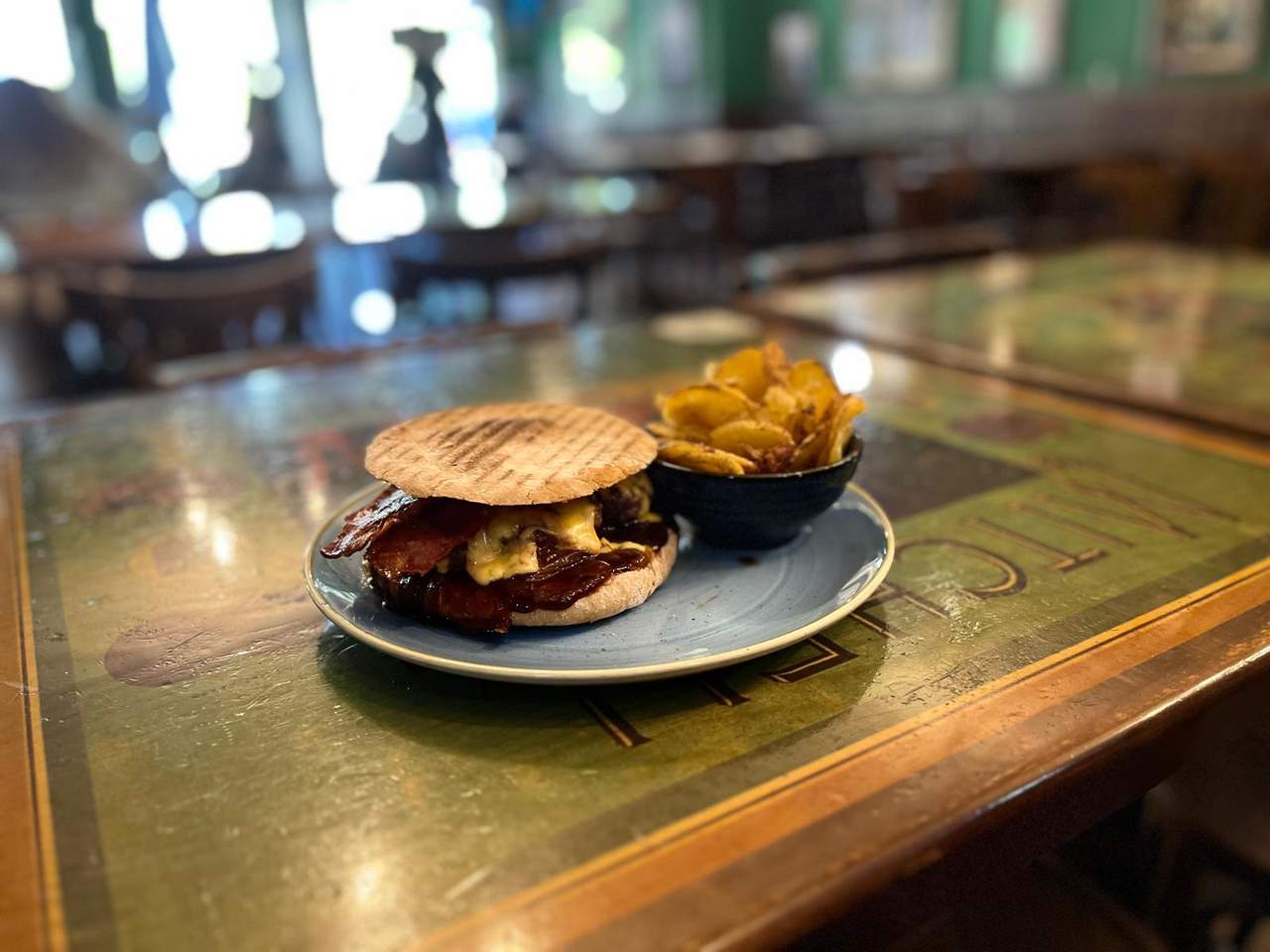 Hamburguesa con mousse de paté y champiñones y cebolla caramelizada Nº1