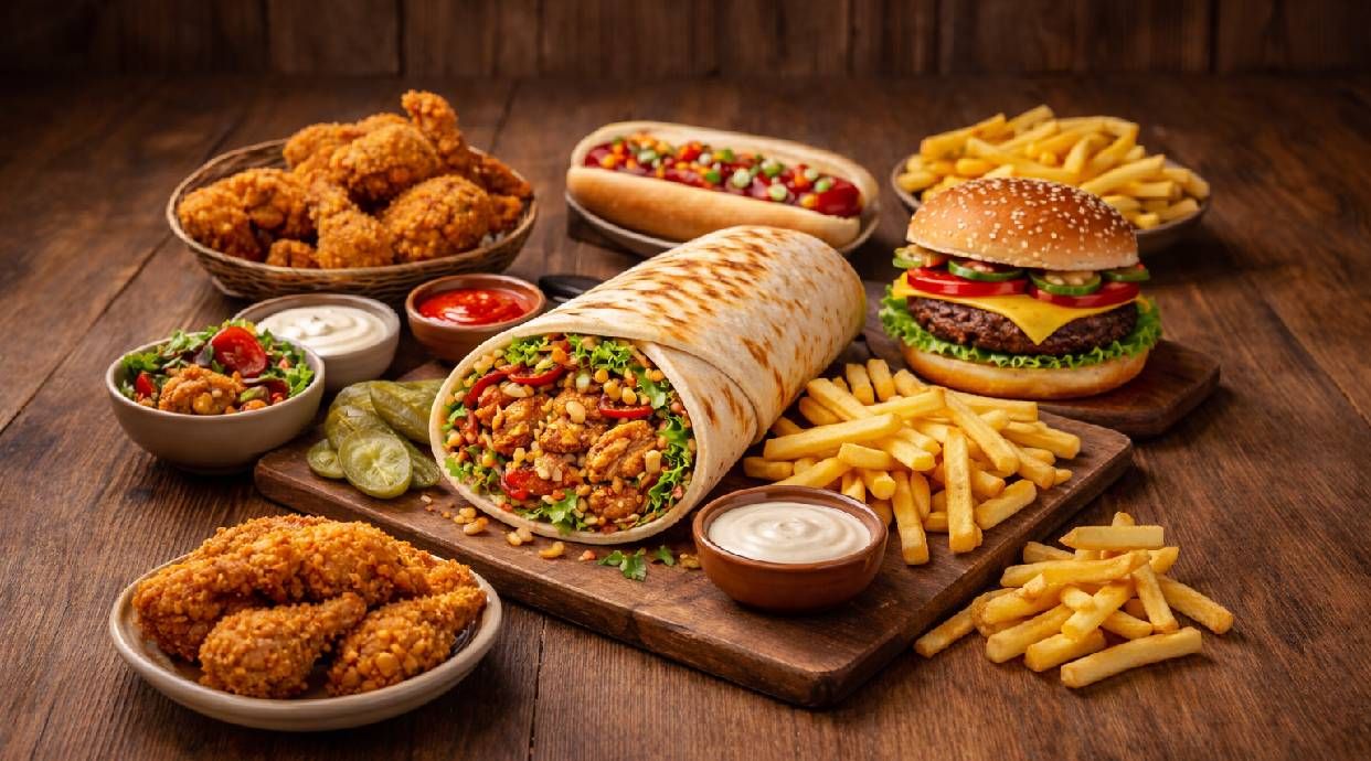 კეტჩუპი, მაიონეზი, პომიდორი, ხახვი,სალათის ფოთოლი, წიწაკა
