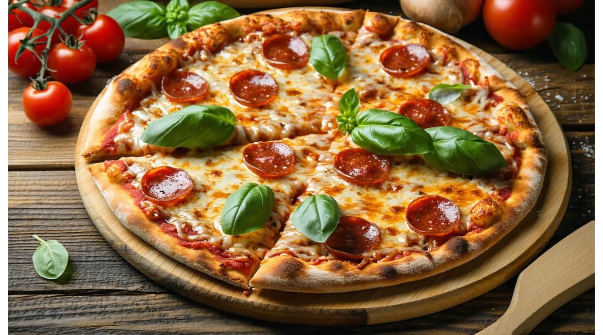 Rajčica, gouda, mozzarella, šampinjoni, špek, ljuti feferoni