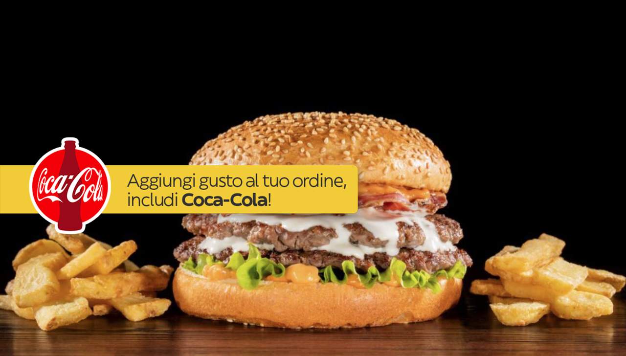 Panino con semi di sesamo*, doppio hamburger* di carne italiana, salsa al "Pecorino Romano DOP", guanciale nostrano, insalata iceberg, salsa maionese senapata con pomodori secchi, servito con patate* Premium Fries e salsa OWW