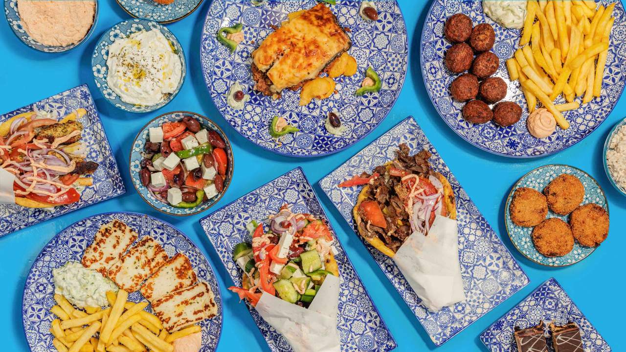 Pita artigianale, formaggio feta D.O.P cetrioli, peperoni freschi, olive kalamata, salsa tzatziki, cipolle di Tropea, pomodoro fresco, origano, salsa piccante patatine fritte