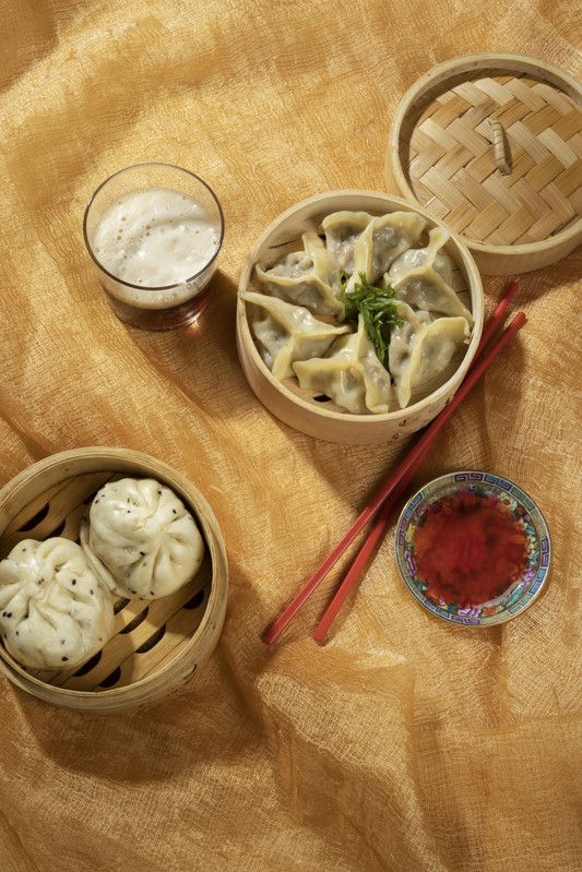 Raviole cinesi con ripieno di carne e cipollini conditi cotto a vapore