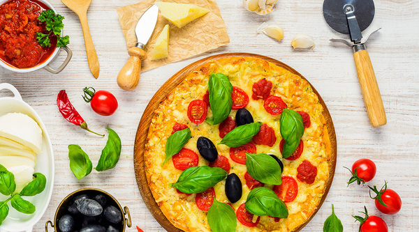 Мясная пицца, Маргарита, ролл с салатом чука, Канада ролл, Цезарь ролл, острый ролл с лососем