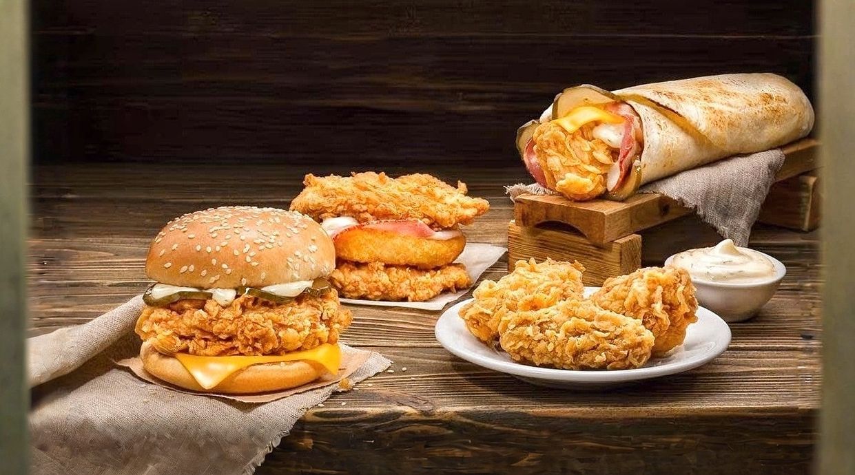 - Бургер BBQ - Фирменный лаваш - Фирменный хот-дог - Пицца "Казахстан", - Картофель фри - Луковые кольца - Наггетсы - Сoca-cola (1 л. 2 шт.)