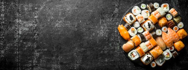 Saumon mariné, crevette panée, cheese, tobico, surimi, avocat