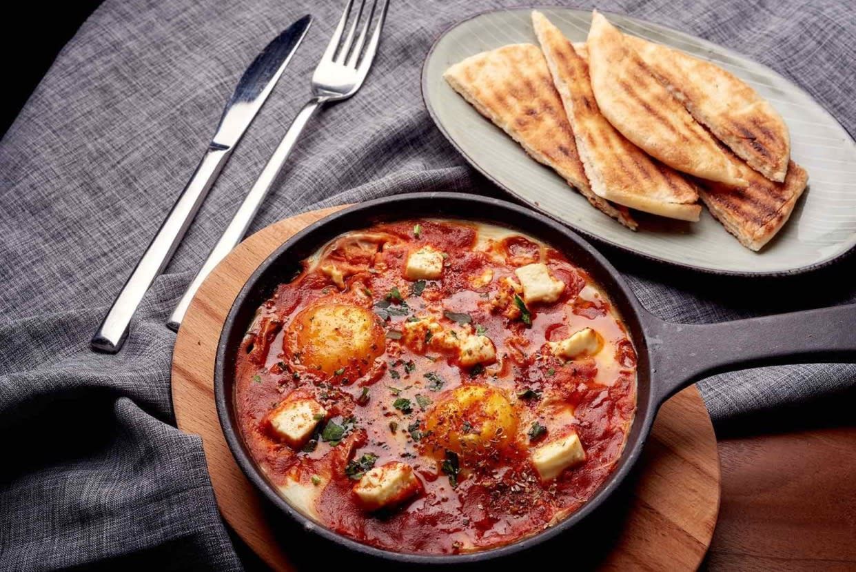 Shakshuka este o mâncare delicioasă ce combină ouă poșate în sos de roșii cu ardei, ceapă și condimente aromatice. Servită cu pita proaspătă, oferă o explozie de arome mediteraneene.350g