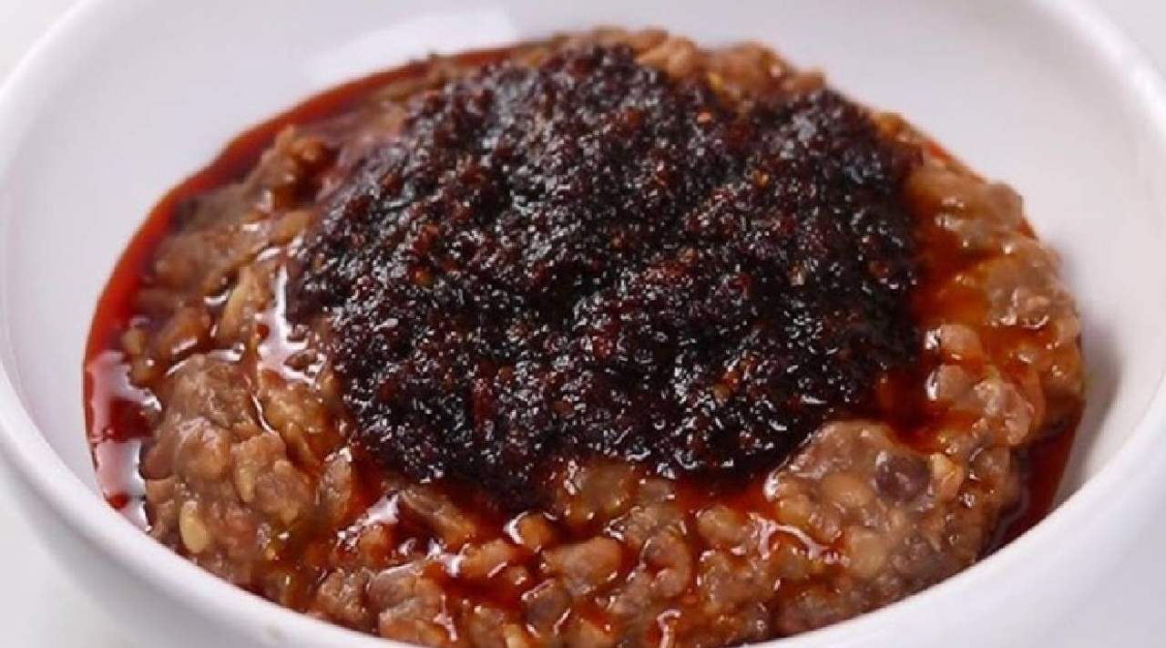 Beans cooked until they become tender then mashed served with sauce made from dried bell peppers, Cameroon peppers and dried pepper seeds