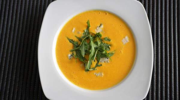 Podawany na mixie sałat z pieczywem czosnkowym-vege