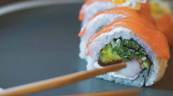Futomaki Łosoś grillowany z sosem kabayaki i migdałami
