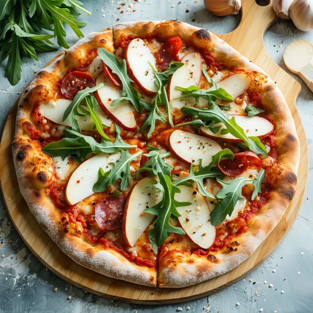 Sos san marzano dop, mozzarella fior di latte, włoskie pikantne salami spianata, rukola, ser grana padano, oliwa z oliwek, oregano