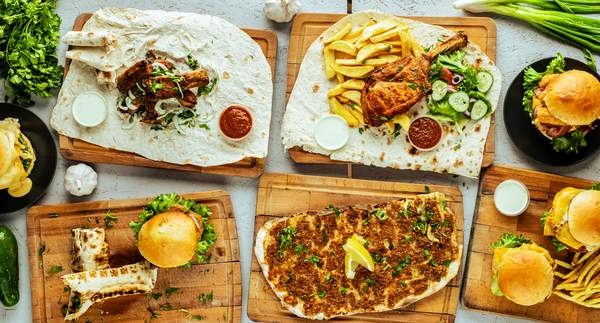 120g mielonej wołowiny zawinięty w cienki lawasz,podawany z pomidorami oraz aromatycznym miksem koperku i pietruszki,cebuli.sos do wyboru.