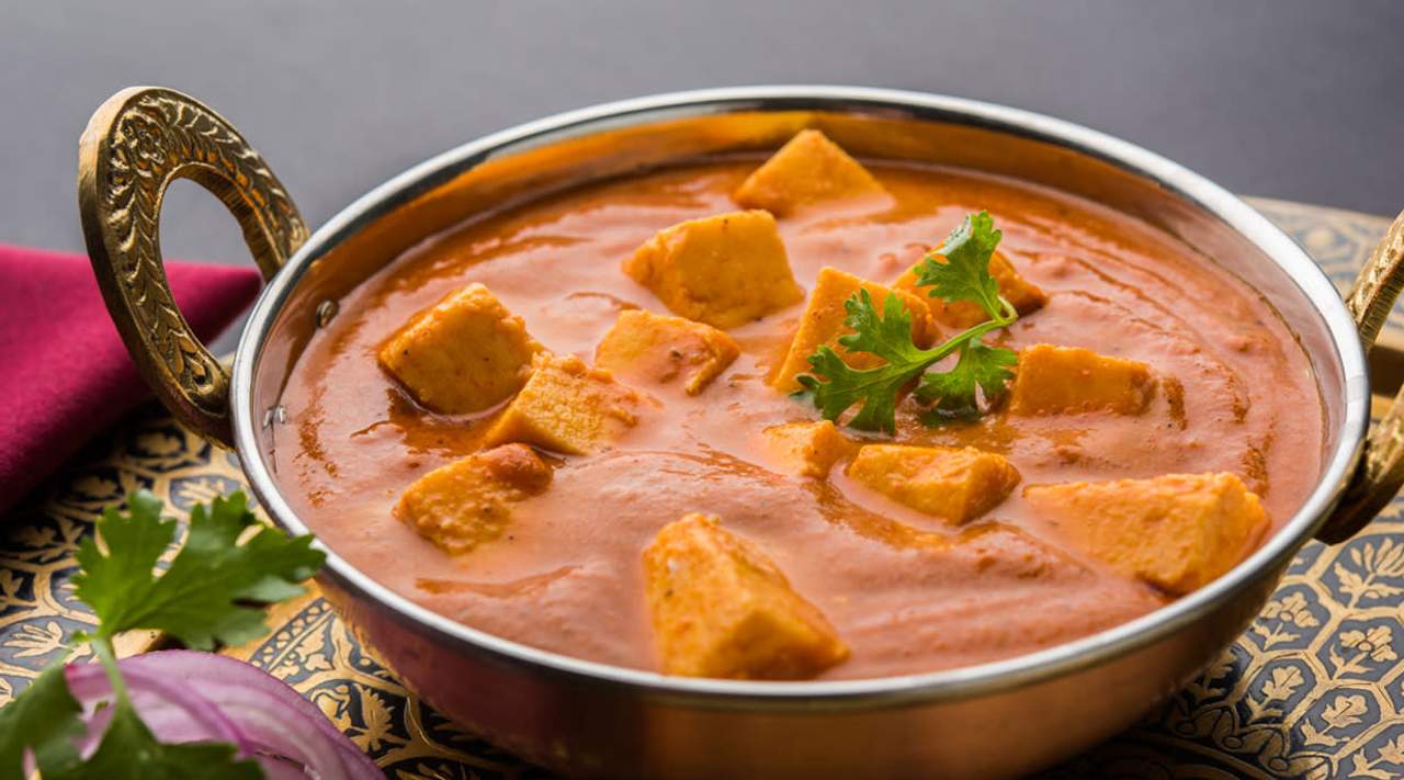 Zamarynowane w przyprawach indyjskich kawalki domowego sera białego, zapieczone w piecu tandoor, podawane w pikantnym sosie masala (mieszanka wielu przypraw) z pomidorów, kolendry i odrobiny śmietany