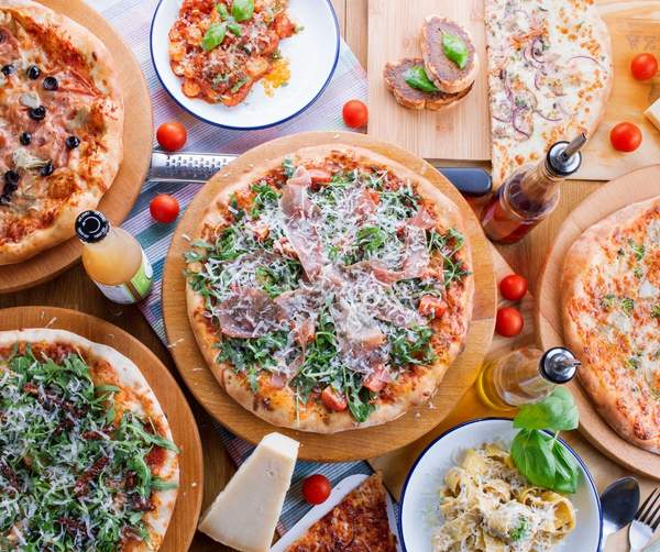 Sos pomidorowy, świeża mozzarella, włoska gorgonzola, mozzarella wędzona, ser Grana Padano