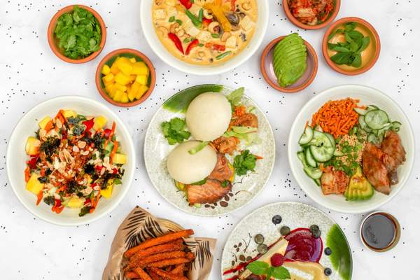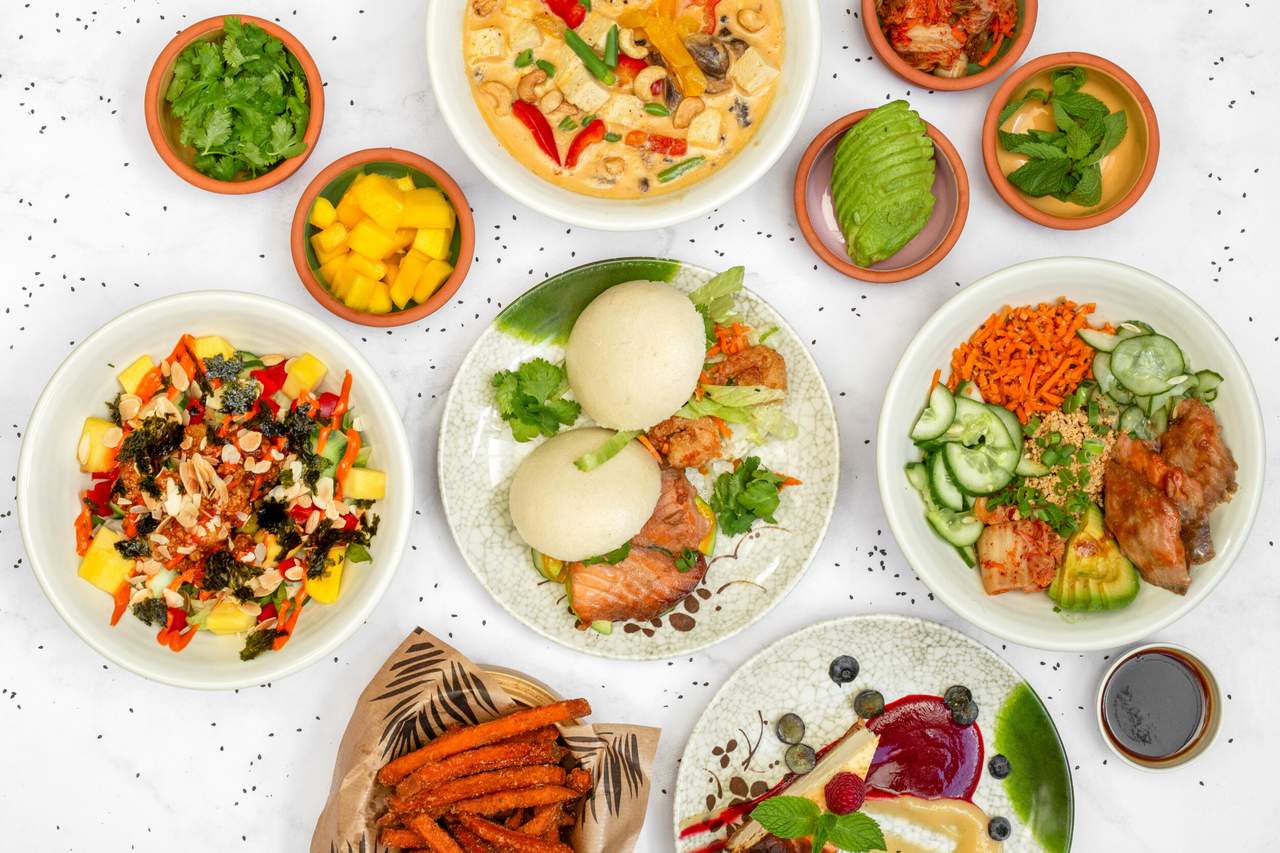 Miska ryżu z kimchi, plastrami awokado, świeżym i piklowanym ogórkiem, marynowaną marchewką z imbirem. Zwieńczona sosem sojowo-sezamowym, szczypiorkiem i kruszonymi orzeszkami ziemnymi.