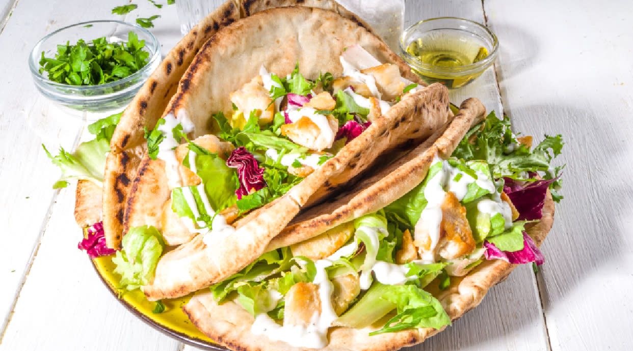 pita, mięso 180 g, sos