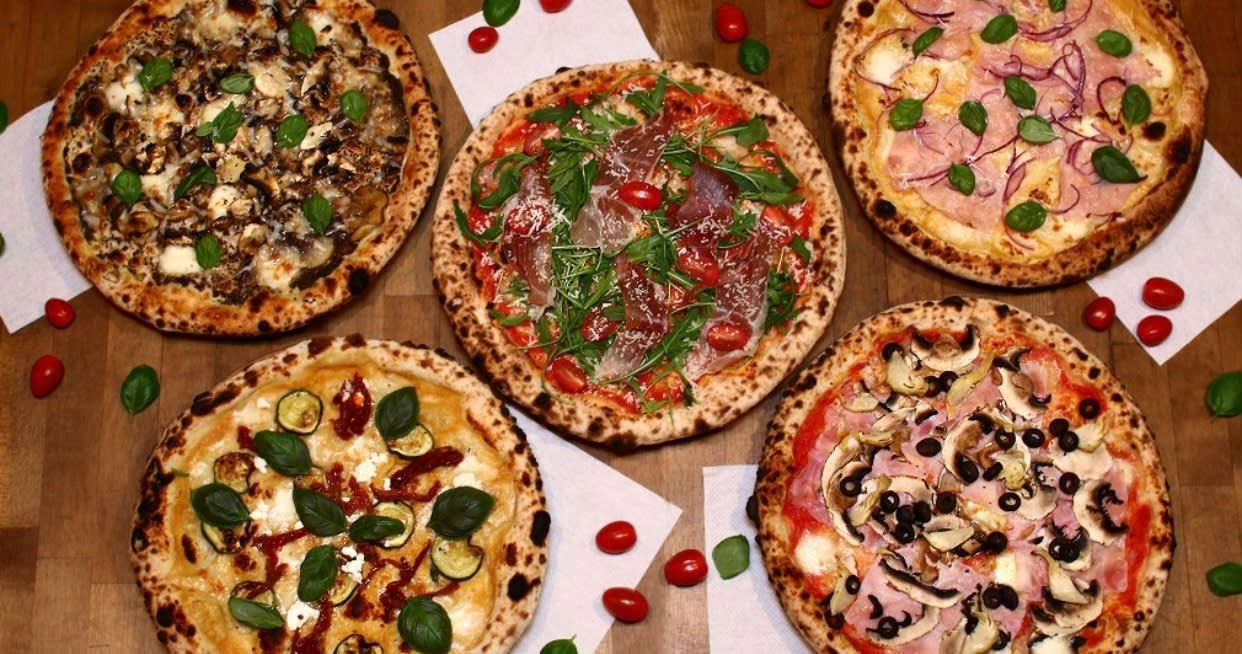 Sos pomidorowy, mozzarellą, nduja, ricottą i świeżą bazylią