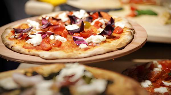 Tomate, Mozzarella, Frango, Cogumelos e Oregão Tomato, Mozzarella, Chiken, Mushrooms and Oregano