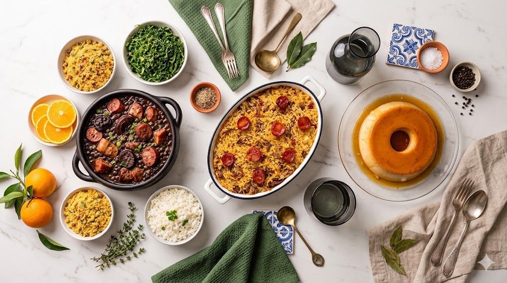 Uma variedade de carnes suínas e bovinas, costelinha, linguiça e paio, resultando em um caldo rico e encorpado.