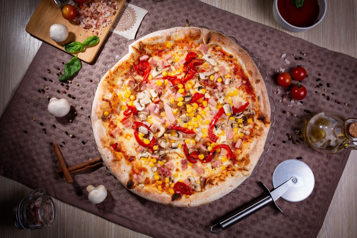 Sos de roșii, mozzarella, ciuperci, bacon, ardei, porumb, ceapă - 640g