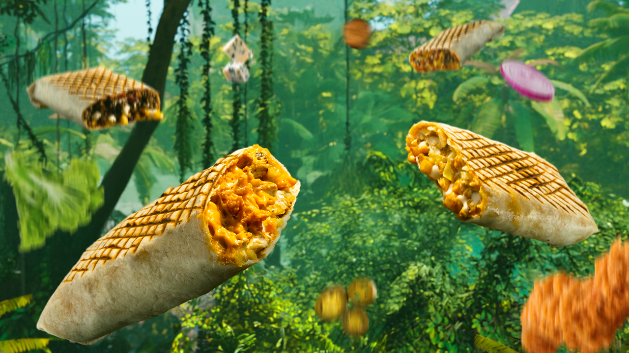 Snitel, Coleslaw, Sos Din Jungla, Sos de Cheddar sau Sos de Branza, Cartofi Prajiti, Lipie rumenită pe grill, pentru extra crunch - 600g