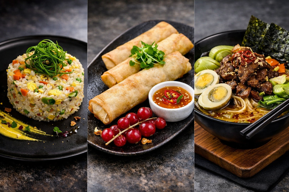 2 pachetele de primăvară cu legume Salată de varză fresh Supă picant-acrișoară Tăieței de orez cu pui