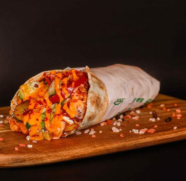 Carne 230g , Cartofi 170g, Salată Varză 40g, Castraveți Murați 40g, Sos Maioneză 35g, Ketchup 35g