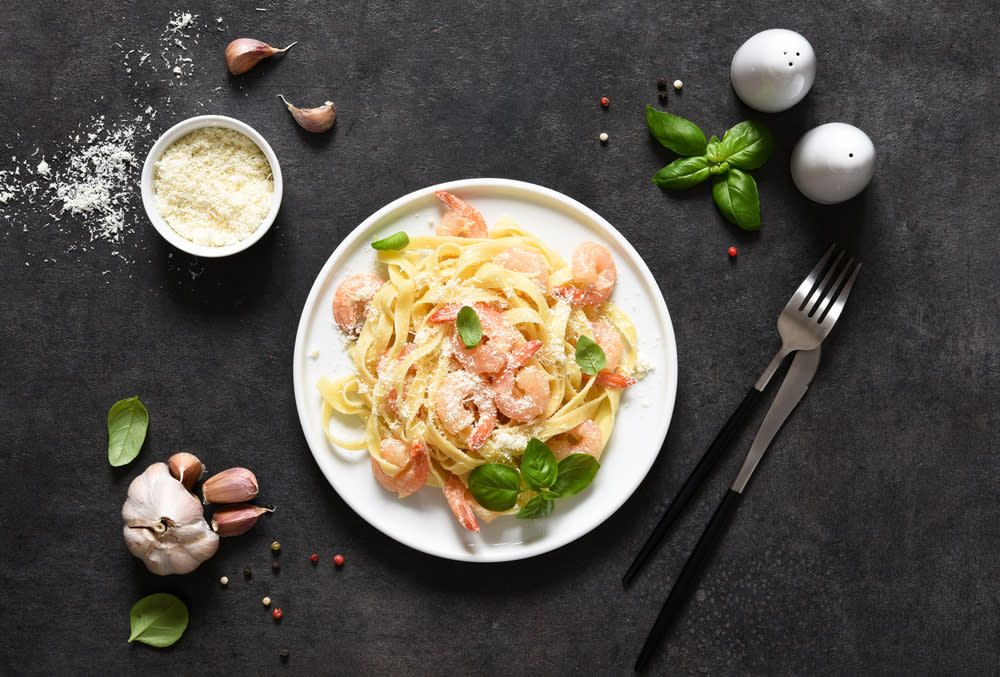 Taglatelle, creveţi, dovlecel, cremă vegetală - 300g