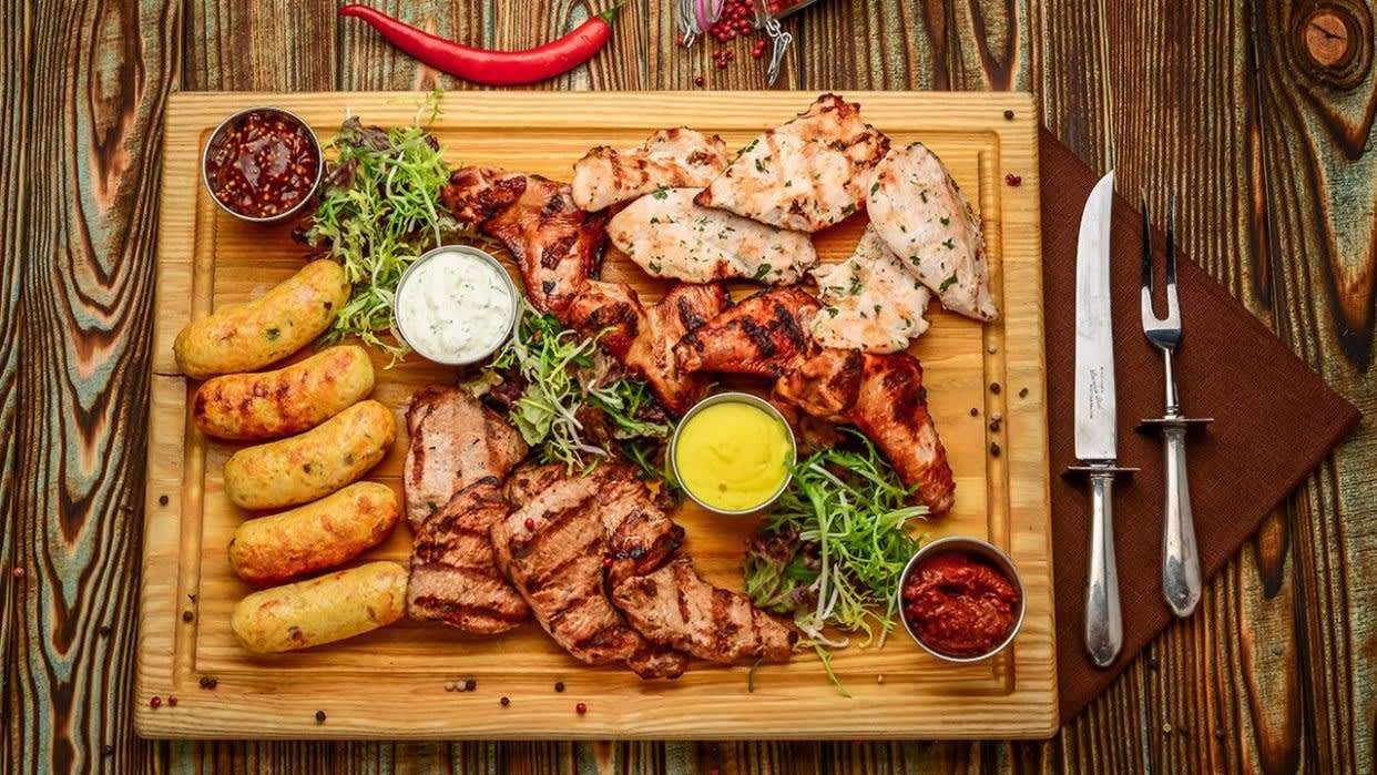 2x 120g juneće-svinjsko meso, premazi i salate po izboru