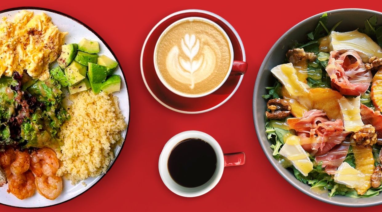 Свіжий мікс салату з лососем, запеченим перцем, огірком та кремовим мусом із фети. Хліб бріош, яйця та медово-гірчичний соус створюють поживний і збалансований сніданок.