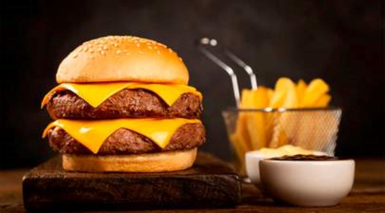 Соус ренч, кетчуп, котлета із яловичини, куряча котлета, подвійний сир, маринований огірок, маринована цибуля