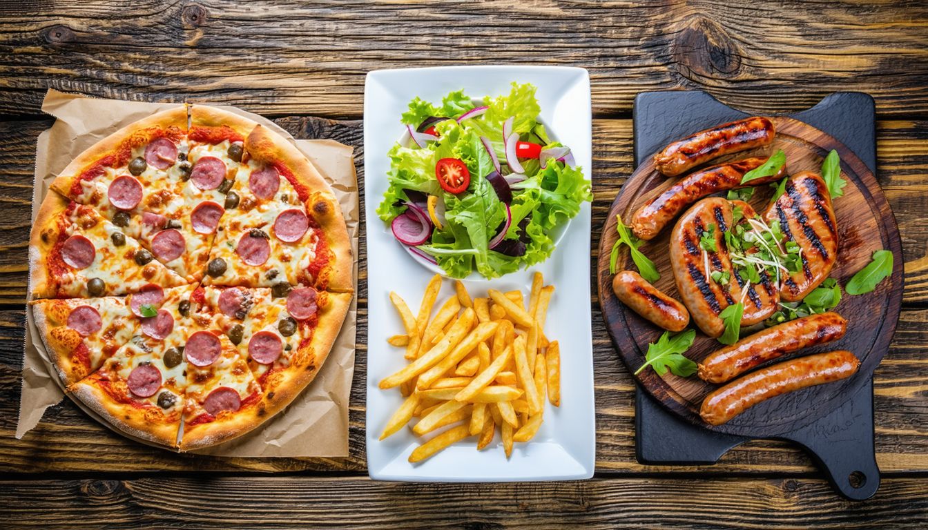 Основа піци, соус Томатний/Вершковий, сир Моцарела, баварські ковбаски, помідори, цибуля ріпчаста, Орегано, сир Пармезан