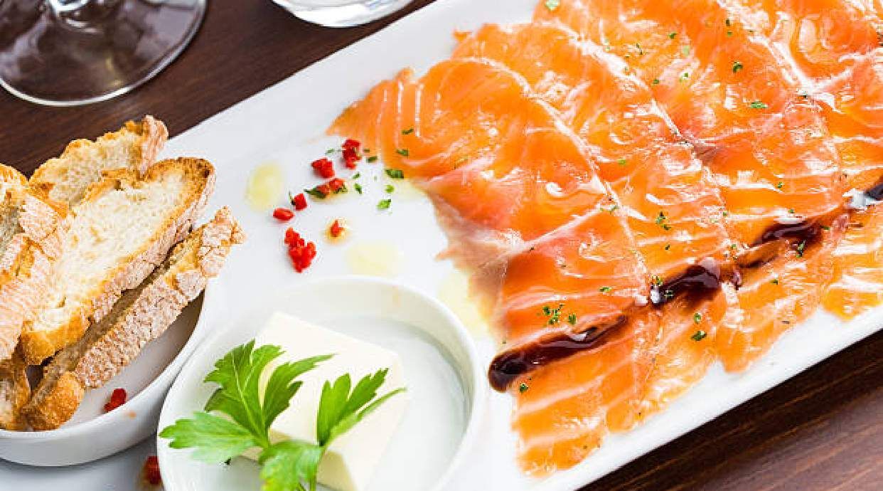 Сир моцарела, лосось філе, кальмари, мідії креветка, сир пармезан з руколою та білим соусом