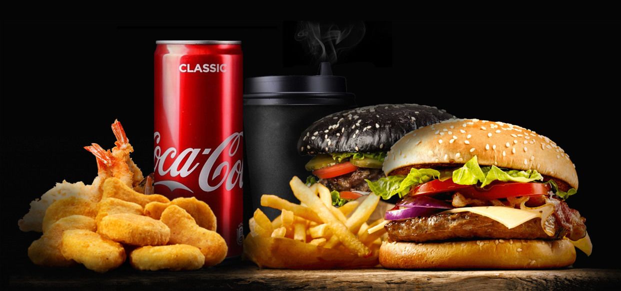 Black-бургер 2шт, бургер Білий Боб 2шт, картопля фрі велика, нагетси 9шт, фірмовий соус