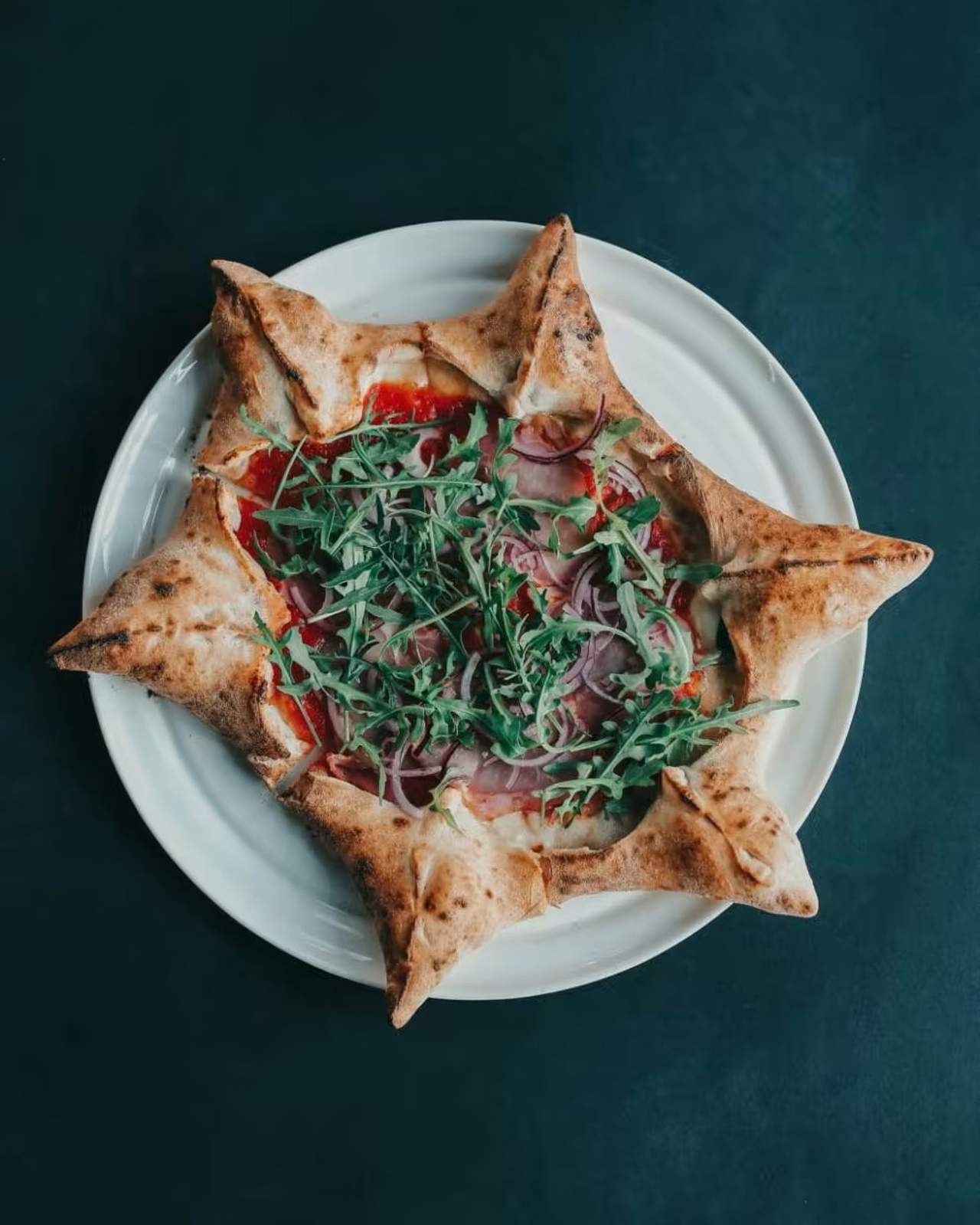Менша версія класичної піци на основі ферментованого тіста з цільнозернового борошна , томатів пелаті та локальної моцарели від нашого сировара Миколи і запашного базиліку .