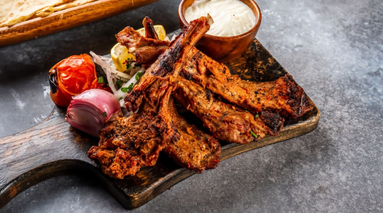 Соковитий кебаб із ніжного курячого філе. Подається з ніжним кус-кусом та пікантним соусом шакушука. З додаванням салату із маслин, оливок, кримської цибулі, помідорів, базиліку та заправлений соєвим соусом.