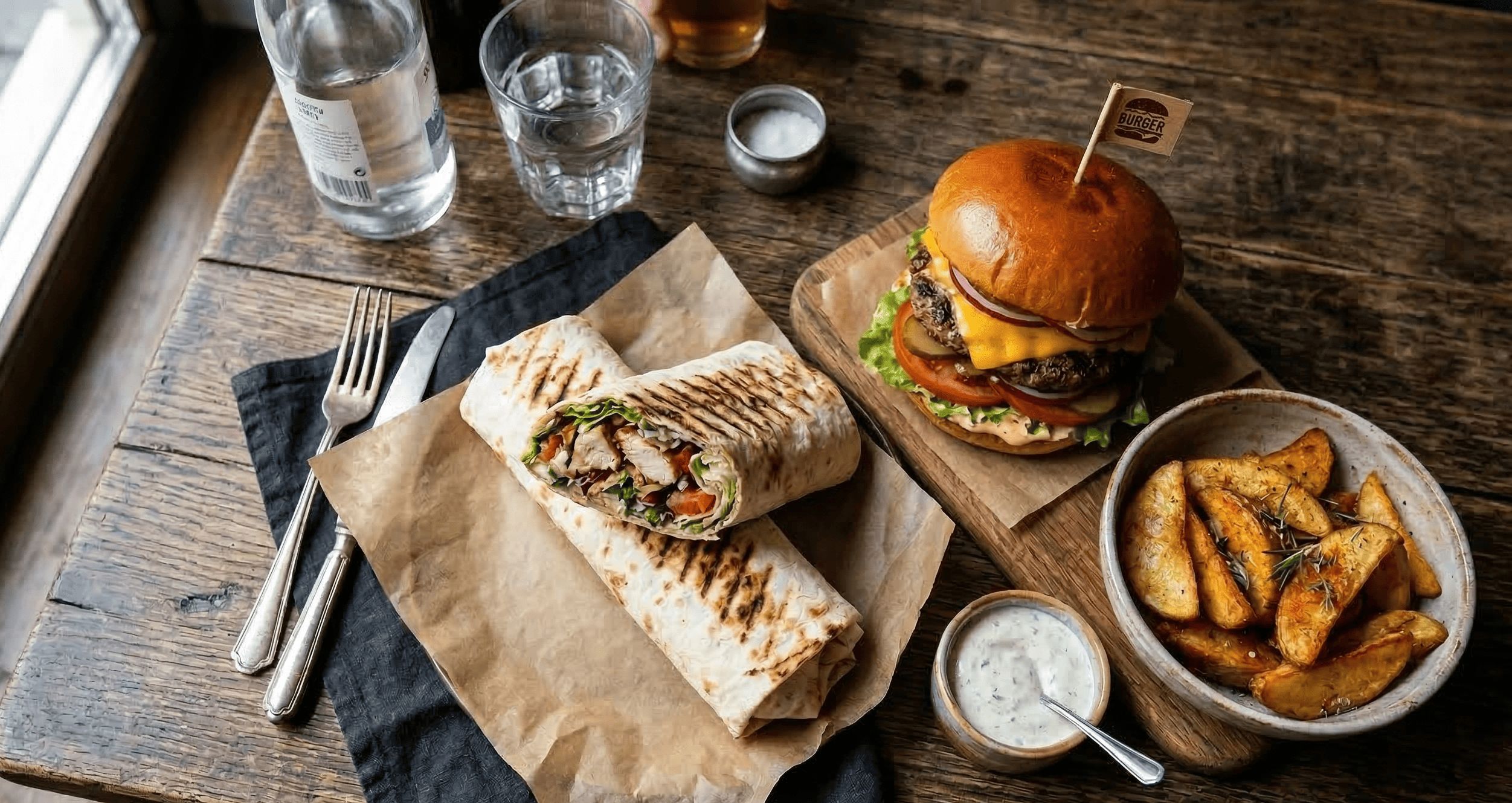 Велика шаурма з поєднанням соковитого курячого мяса та свинини, свіжою капустою, помідором і маринованим огірком. Доповнена ніжним білим соусом, загорнута у лаваш і підсмажена до хрусткої скоринки.