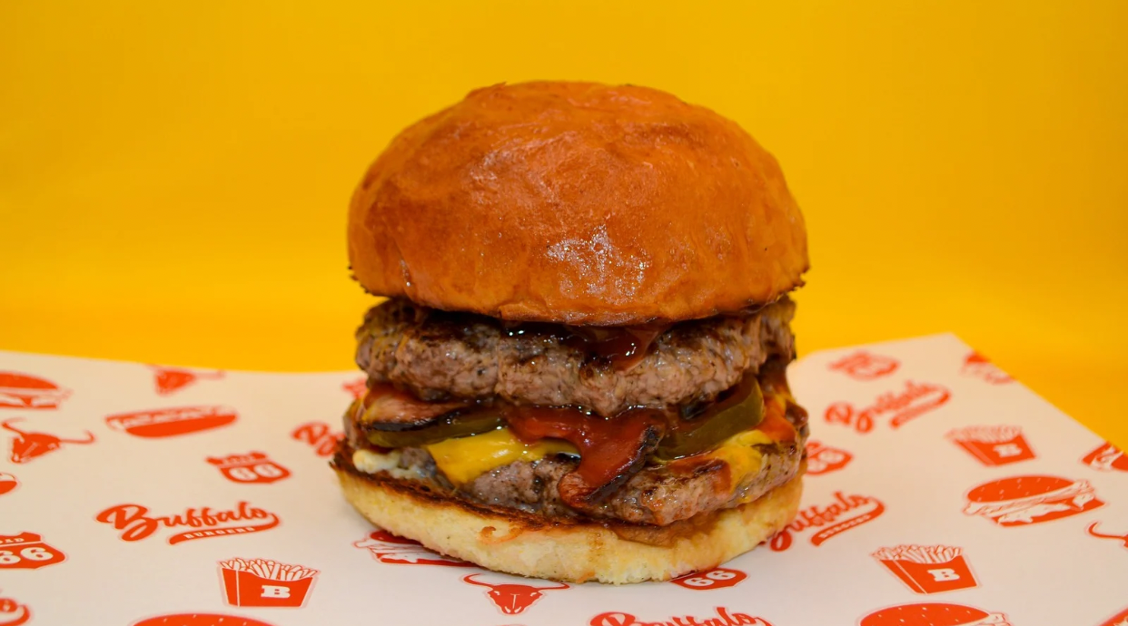 2x яловичі смеш котлети, 2х чеддер, моцарелла, бекон, цибуля гриль, соус крафт, BBQ Mississippi Подається без фрі