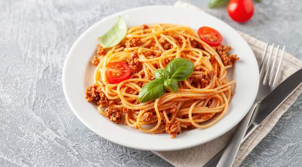 Спагеті, фарш, Томатна паста, бульйон, сир Пармезан