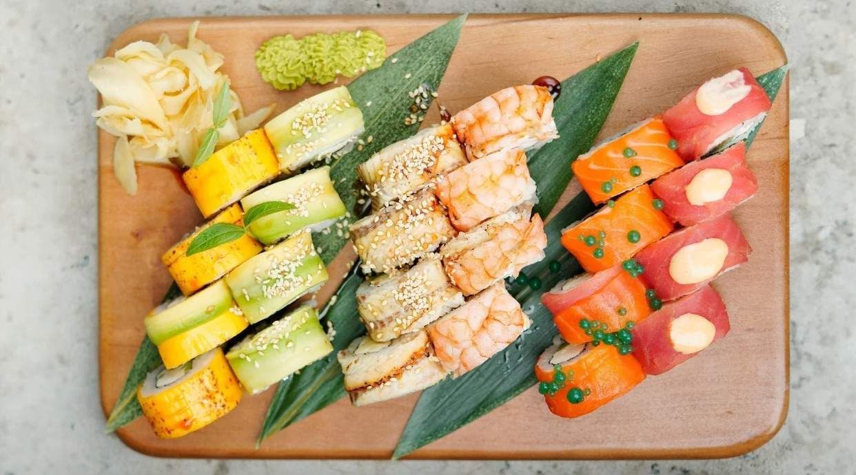 1. рол тунець, манго та авокадо з соусами манго та унагі 2. рол вугор, креветка унагі, трюфельна паста та авокадо 3. рол спайсі тунець, гребінець, ікра масаго, авокадо та огірок