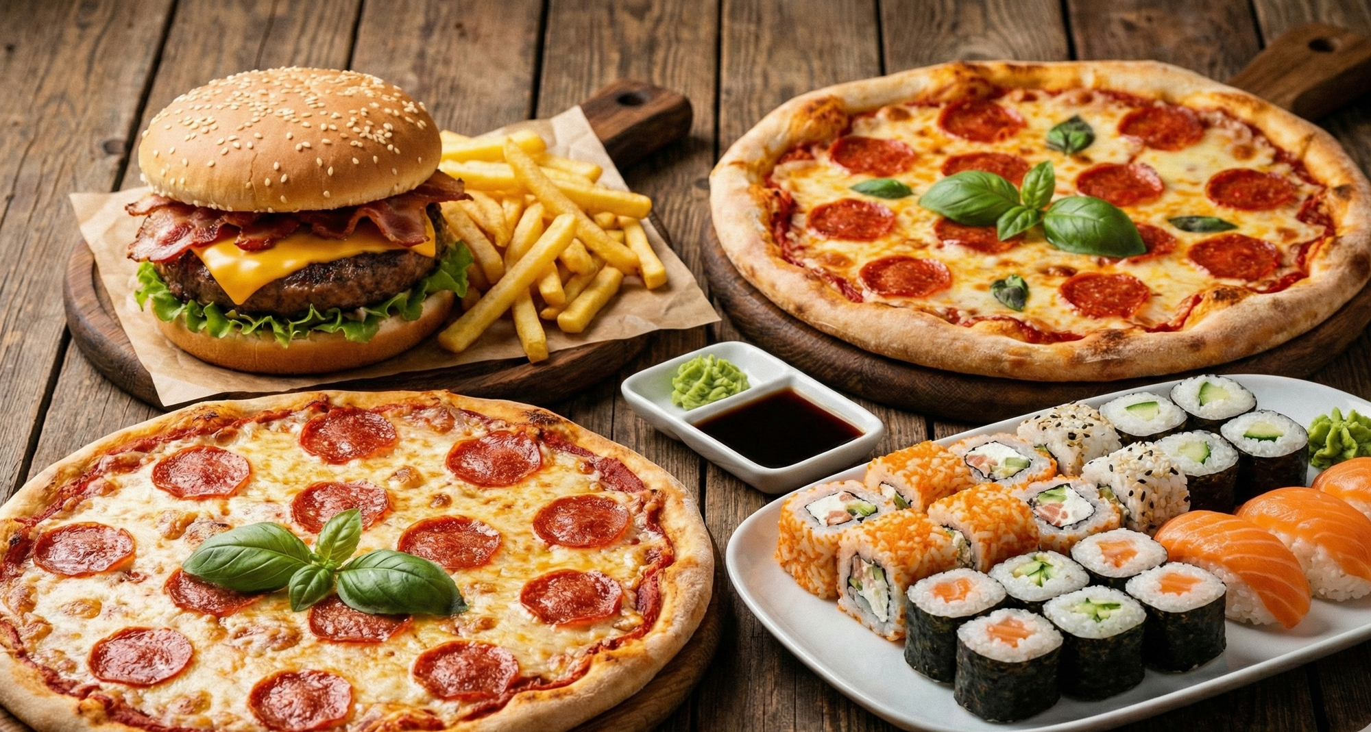 Грін рол з куркою, Філадельфія лайт, Філадельфія класична, Рол тар-тар з лососем, Футомак з куркою, Рол чіз з вугрем, Каліфорнія класична, Каліфорнія з лососем