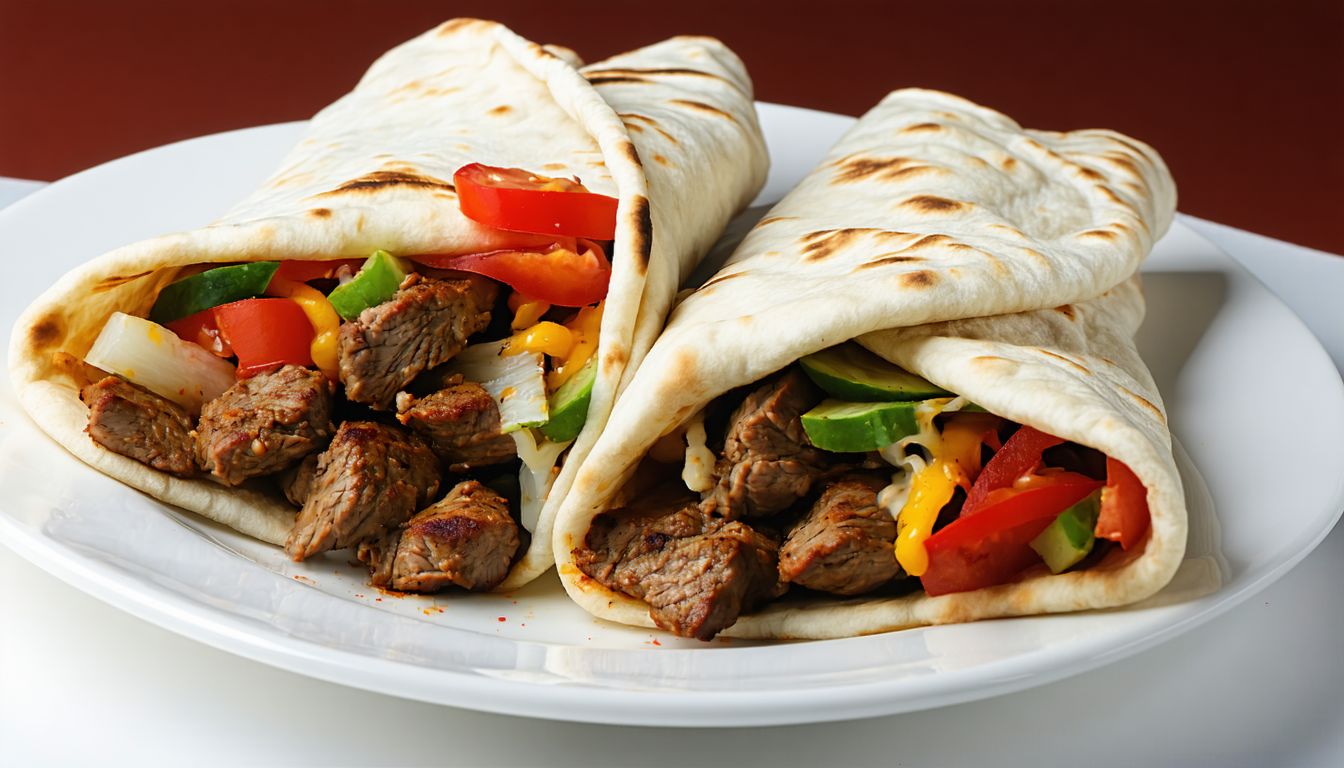 Лаваш, яловичина, соус майонезний, томатний, овочі (капуста, огірок, помідор), олія, сіль, перець