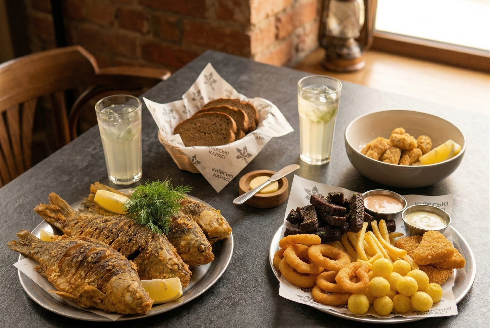 Я зараз у місті Kyiv Right Bank. Що можна замовити у закладі «Kyivski Karasi / Київські Карасі»?